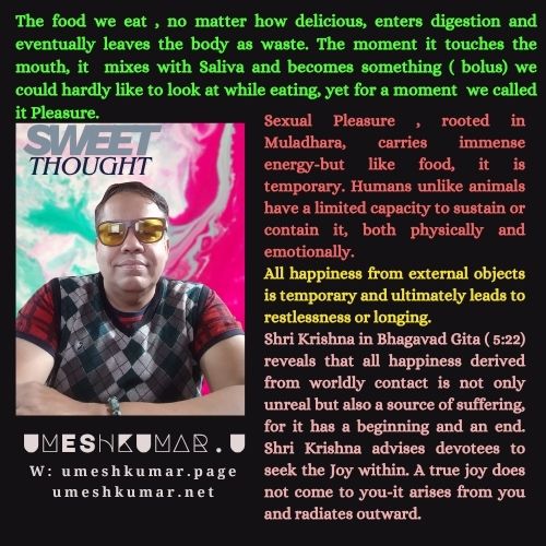 JOY BEYOND HAPPINESS UMESHKUMAR UOctober 26, 2025October 26, 2025 Wisdom No Comments food, happiness, JOY ← THE UNSEEN SUSTAINS THE SEEN Leave a Reply Cancel replyYour email address will not be published. Required fields are marked *Comment * Name * Email * Website Save my name, email, and website in this browser for the next time I comment.