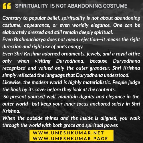 SPIRITUALITY IS NOT ABANDONING COSTUME UMESHKUMAR UNovember 23, 2025November 23, 2025 Wisdom No Comments Costume, Spirituality ← YOU ARE VICTORIOUS BEFORE YOU HAD A NAME Leave a Reply Cancel replyYour email address will not be published. Required fields are marked *Comment * Name * Email * Website Save my name, email, and website in this browser for the next time I comment.